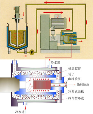 可實現(xiàn)低溫砂磨 縮短漿料在磨腔內(nèi)的滯留時間,有效抑制溫度上升。通過循環(huán)冷卻水的冷卻,可實現(xiàn)低溫砂磨。 |